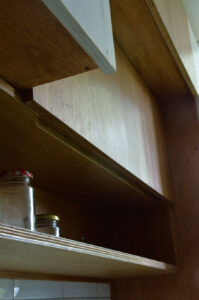 Aberturas sem ferragens com técnica de angulação nas extremidades de portas e gavetas.